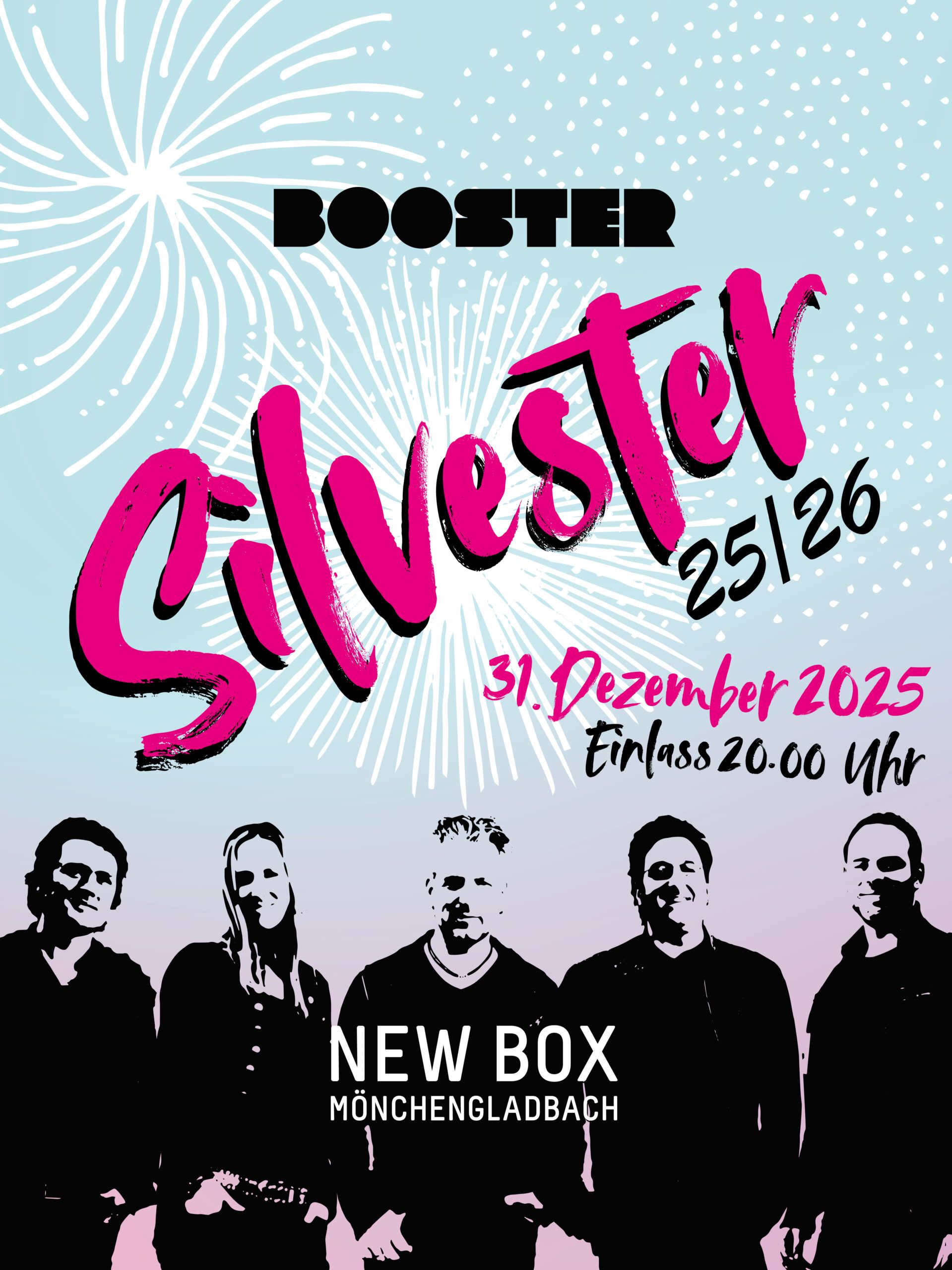 Um Mitternacht erwartet die Gäste ein atemberaubendes Feuerwerk, das den Himmel über der NEWBOX erleuchtet und den Start ins neue Jahr gebührend feiert. Direkt nach dem Feuerwerk wird im Foyer ein prickelnder Neujahrssekt serviert, während BOOSTER mit weiteren musikalischen Höhepunkten das Jahr 2026 begrüßt.
